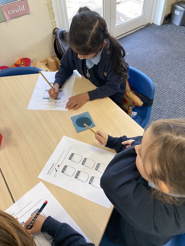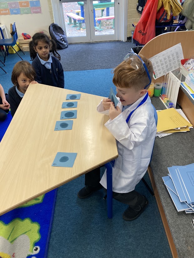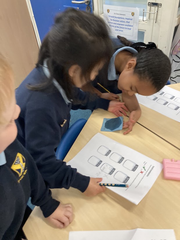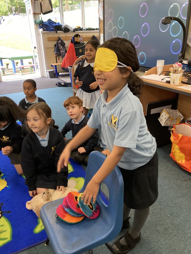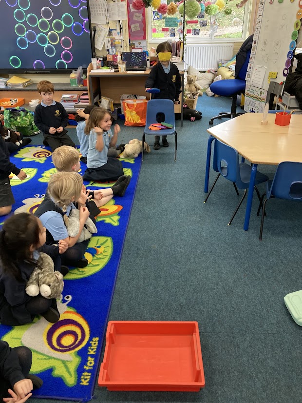 The children explored the human body through the song ‘Heads, Shoulders, Knees and Toes’ and hands-on labelling activities. They then developed their understanding of the five senses: sight, sound, touch, smell and taste. We made pipe cleaner models of our sense organs. To encourage ownership of their learning, a different child was selected each week as ‘Scientist of the Week’, taking the lead in our investigations by measuring, recording data and drawing conclusions.