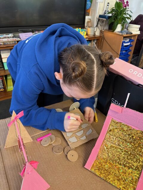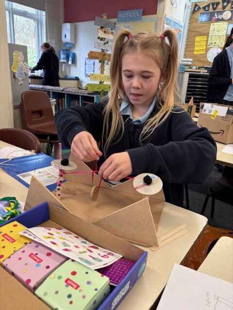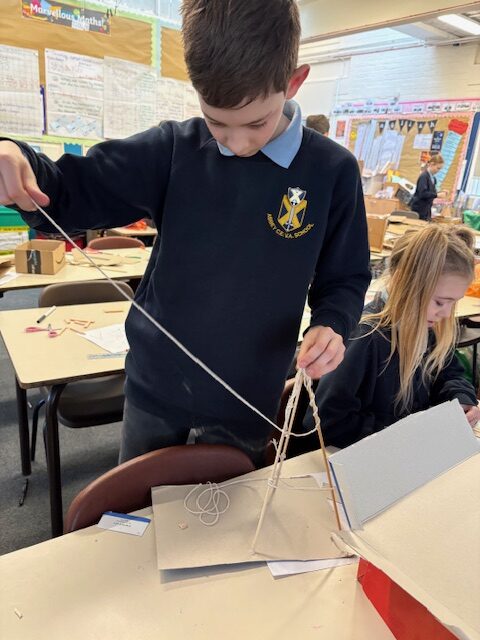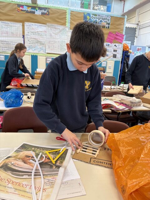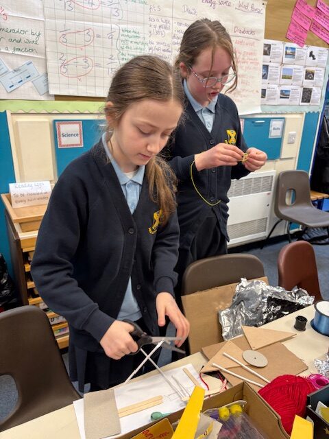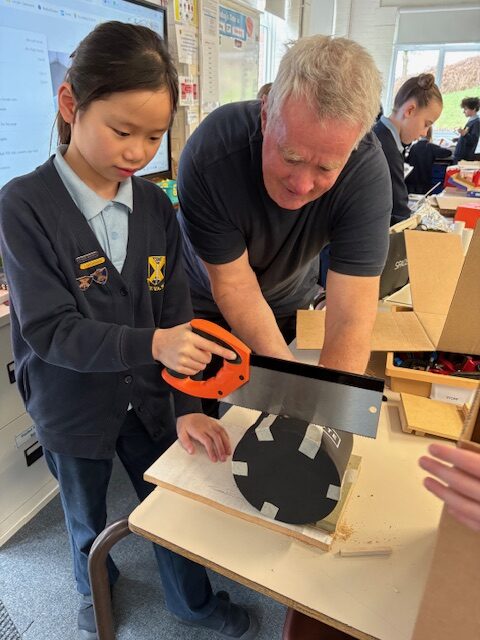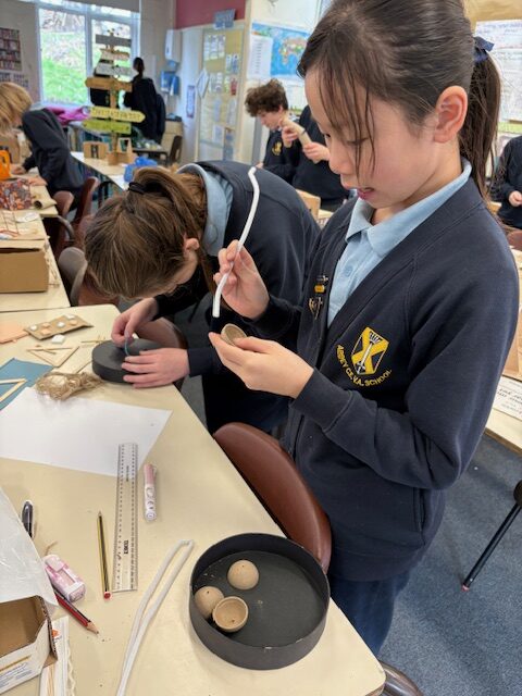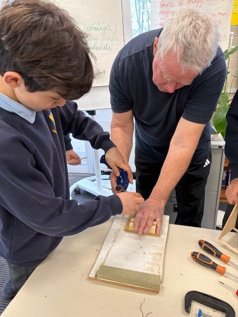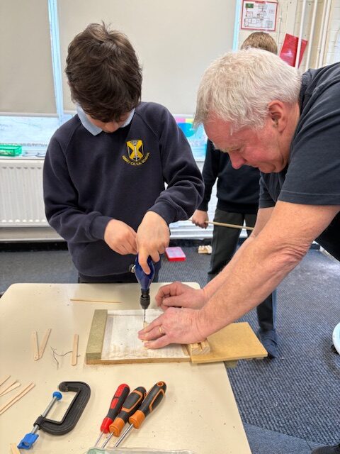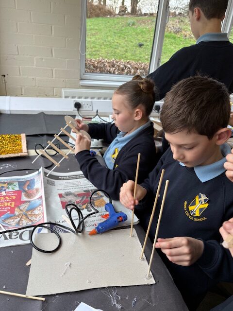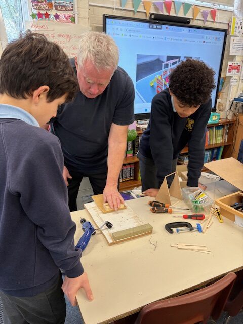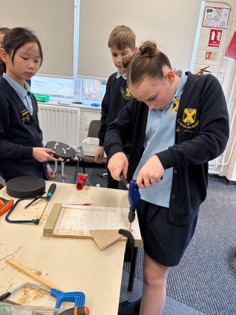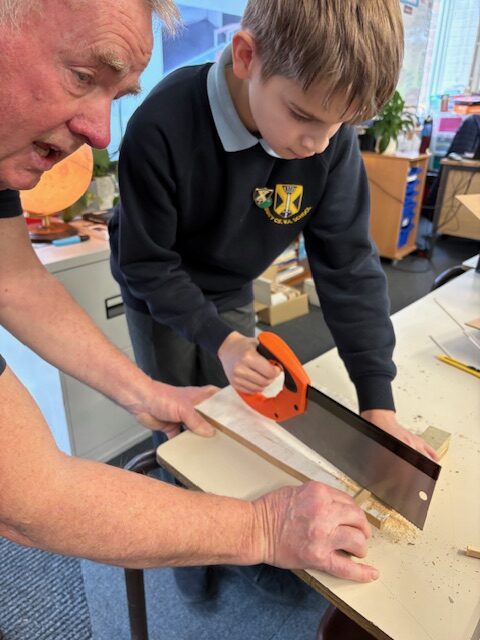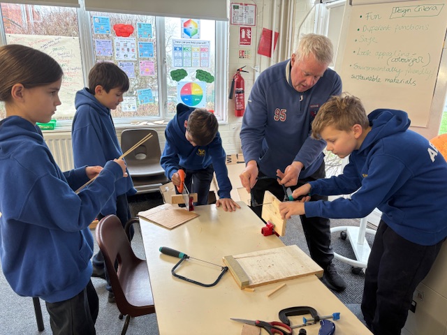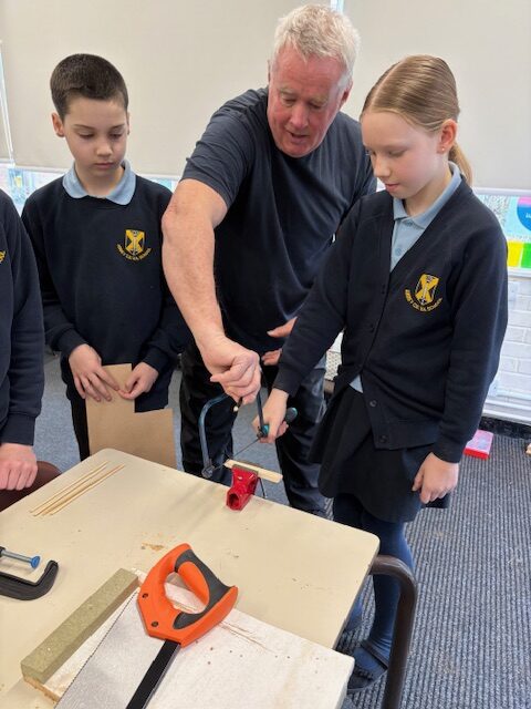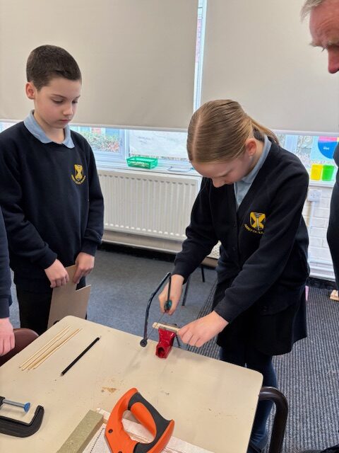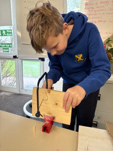 Mr Astley very kindly gave up two mornings to spend with us which enabled the children to learn how to use equipment including a bench hook, cutting knife, a vice, a saw, pliers, 2 drill bits and a clamp. We also had hot glue guns on the go and I was so impressed with how sensibly and carefully they worked and the teamwork that was also visible throughout. I’m sure you’ll agree that the results are really impressive!