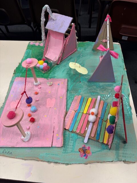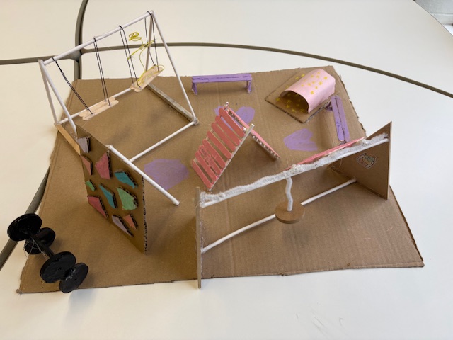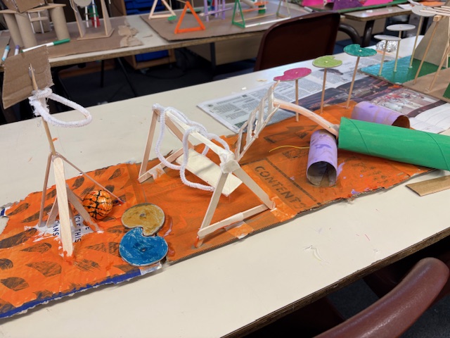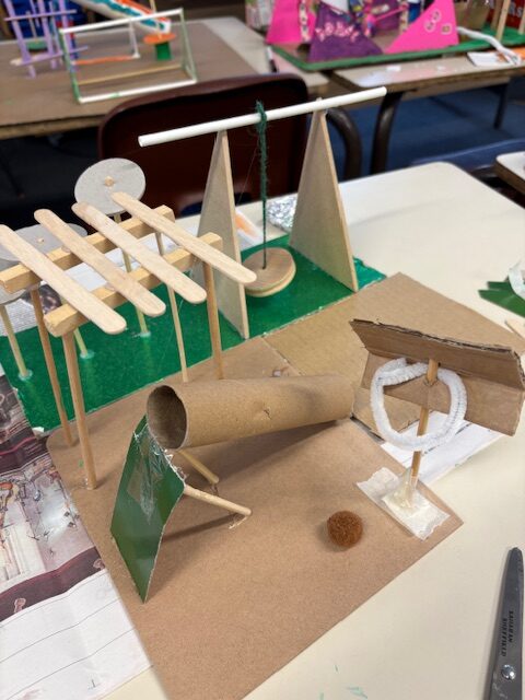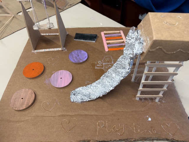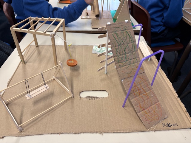 We have had two fantastic days of Design and Technology in Year 6 this week! The children were given the brief of designing and constructing models of playground equipment, using a range of materials including wood, cardboard, foil, wire, string, lolly sticks, paper and plastic straws, pipe cleaners and fabric. All of the models had to fulfil the following design criteria: