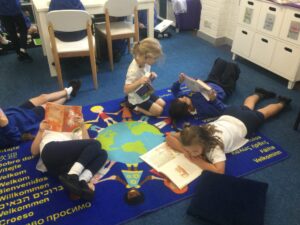 To start our text Little Red Reading Hood we explored reading in a variety of places.